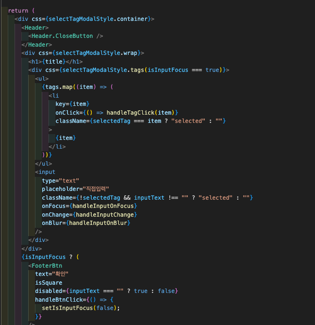 - input에 글 있어도 태그 선택시 태그 배경색 변경