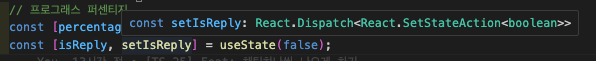 예를들어 setIsReply의 타입을 찾을 때 커서를 올려놓기만 해도 type이 뜬다.