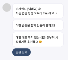 그래서 {id: "habit", text: "반가워요", reply: "습관 선택"} 형식으로 데이터를 묶어서 저장하고