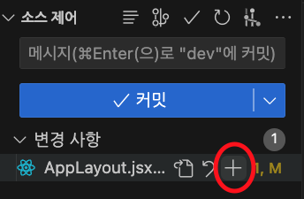 또는 vscode에서 "+" 버튼을 눌러서 스테이징을 시킬 수 있습니다.