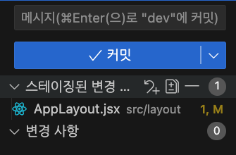 또는 vscode에서 "커밋" 버튼을 눌러서 커밋을 시킬 수 있습니다.