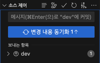 또는 vscode에서 "푸시" 버튼을 눌러서 커밋을 시킬 수 있습니다.