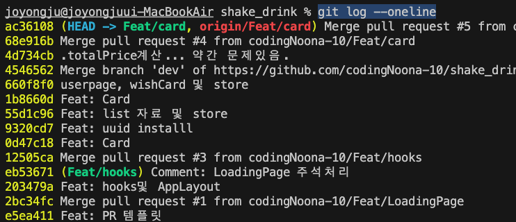//이러면 자신의 커밋이 원격저장소인 github의 Feat/card로 보내집니다.