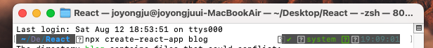 4. 터미널에 npx create-react-app {폴더명} 적기