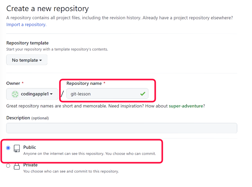 완료하면 git 명령어가 나오는데 그거대로 따라하면 된다.