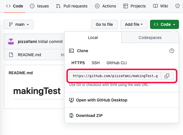 그니깐 https://github.com/pizzaYami/makingTest.git 이부분을 매번 입력하기 귀찮으면