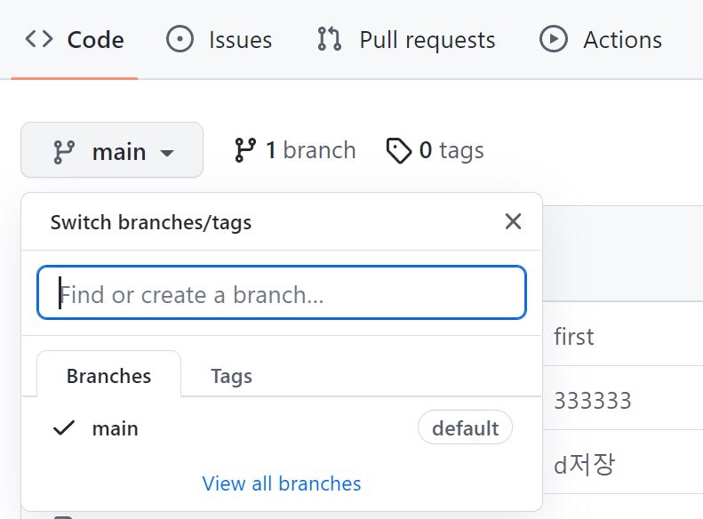 1. github 사이트에서 직접 브랜치 생성가능