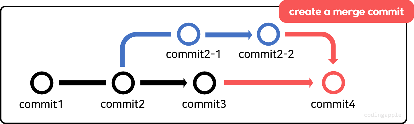 새로운 merge commit을 하나 생성해주는 3-way merge를 실행해준다.