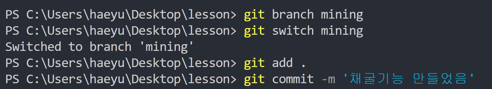 1. 작업 폴더를 만든 다음 터미널을 열어서 git init을 한다.