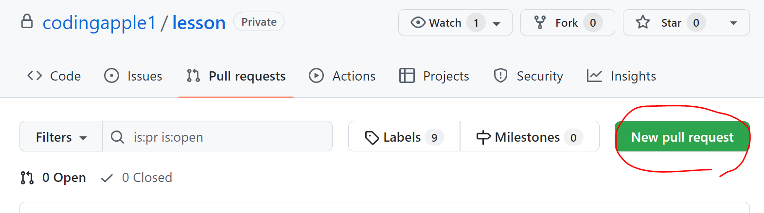 ▲ 그럼 Pull requests 메뉴에서 이렇게 확인가능한데