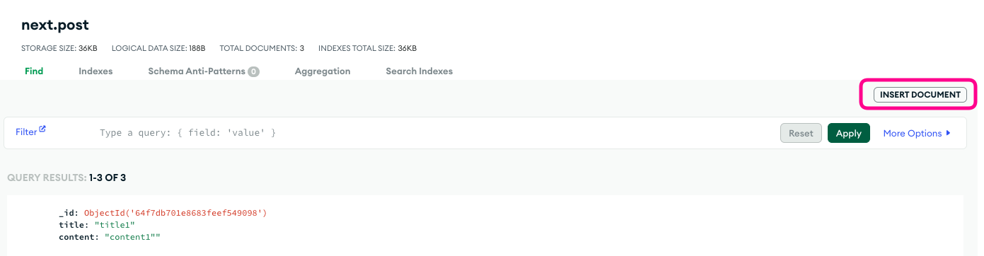 INSERT DOCUMENT로 들어가면 데이터 수정가능