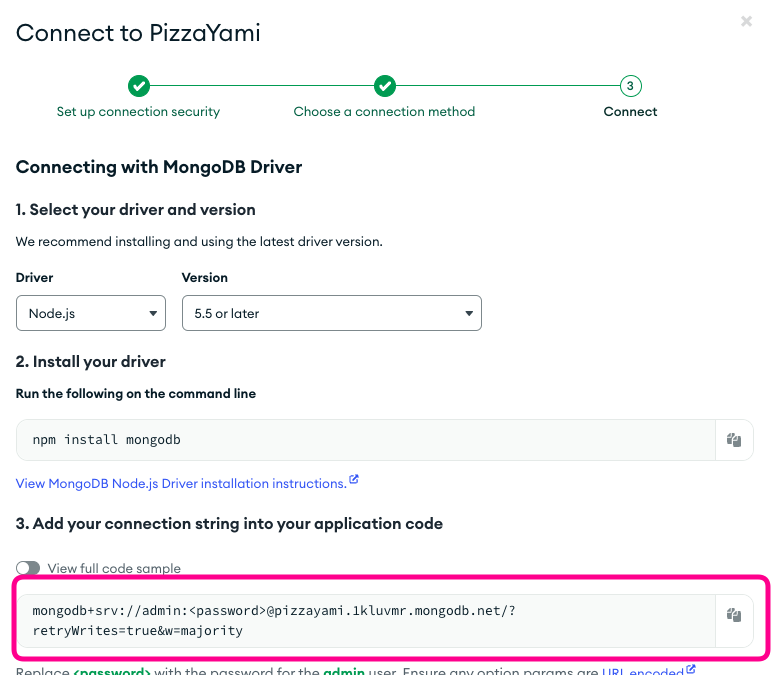 "mongodb+srv://admin:비밀번호@pizzayami.1kluvmr.mongodb.net/?retryWrites=true&w=majority";