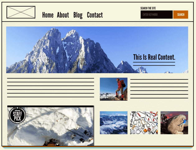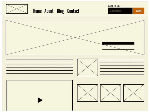 템플릿은 page를 만들 수 있도록 여러 개의 organism, molecule로 구성된다. 아래 이미지와 같이 실제 컴포넌트를 레이아웃에 배치하고 구조를 잡는 와이어 프레임입니다.