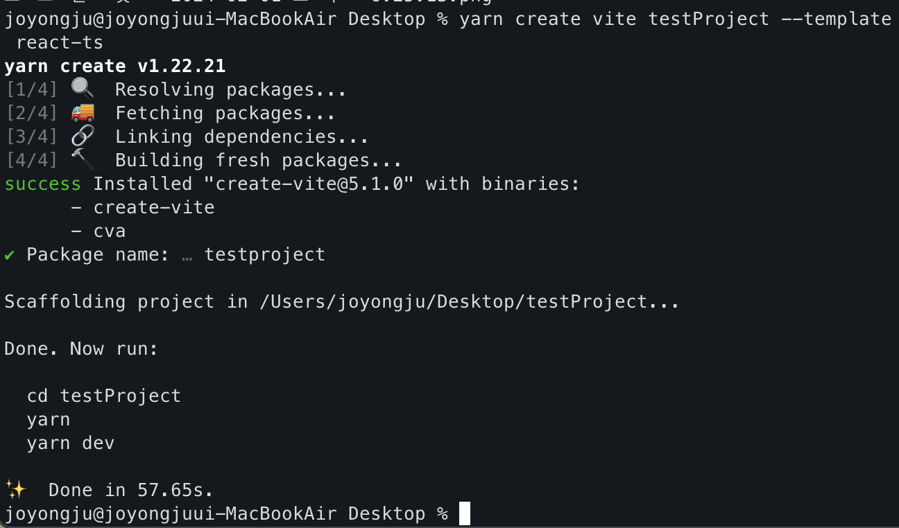 1. yarn create vite [프로젝트 이름] --template react-ts