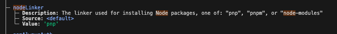 근데 프로젝트 내부에 .yarnrc.yml파일이 없었다. 그래서 yarn config를 통해 찾아봤는데 pnp로 잘 설정되어 있었다.